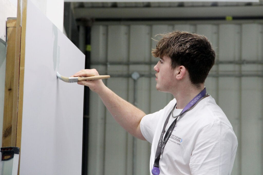 In the Painting and Decorating workshop, Level 2 apprentice, Euan, reflected on the value of the practice: “Personally I’ve never done anything this detailed at work, so it’s good to try something new and push yourself. It’s all helpful practice.”