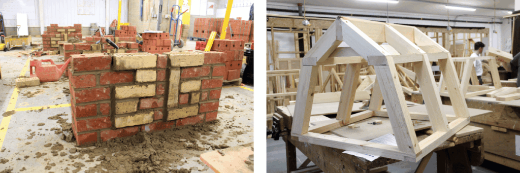 Tasks are designed to test real-world skills, with students completing difficult technical briefs such as painting patterned wall designs with curved edges and building complex roof sections by hand.