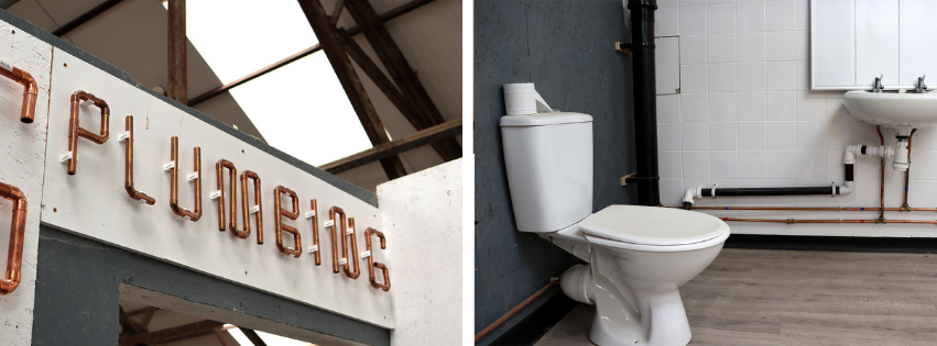 Located upstairs are the Carpentry, Electrical, and Plumbing workshops. A repurposed large shed houses the Bricklaying workshop, which also includes an outdoor area for getting learners prepared to laying bricks in all weather conditions.